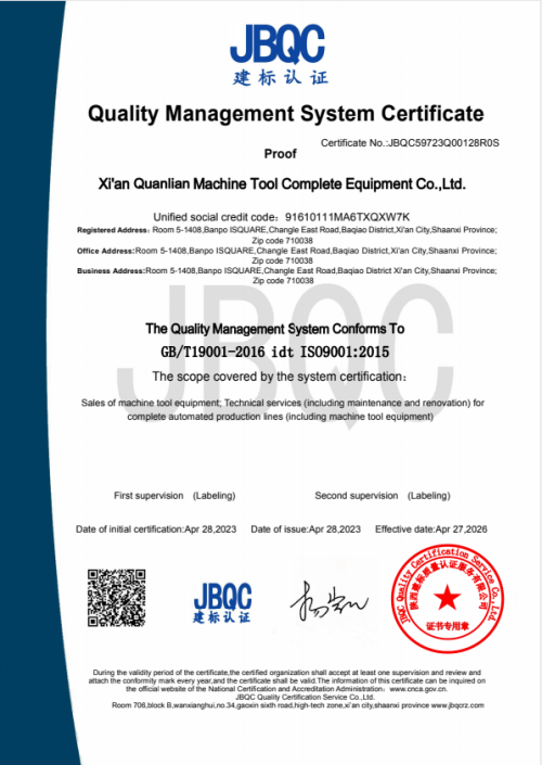 全聯成套全(quán)面通過質量管(guan)理體系認證證(zheng)書