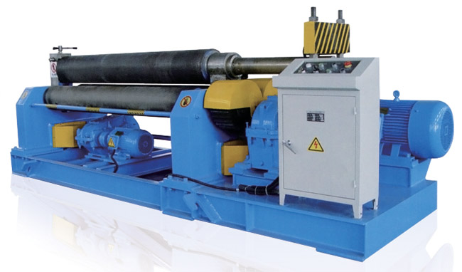 該機屬(shu)于機械型(xing)三輥卷闆(pan)機,用于将(jiang)鋼闆卷成(chéng)圓筒形。